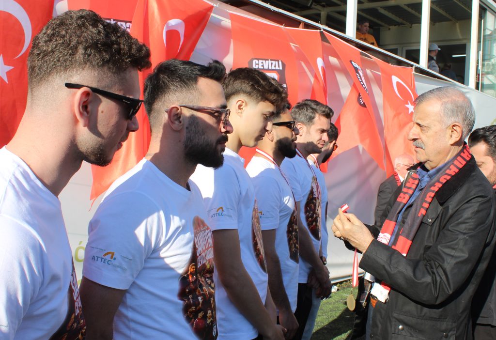 KUPAYI KALDIRDILAR: Türkiye Futbol Federasyonu Süper Amatör Lig 1. Grup şampiyonu olan Cevizli Anadoluspor’un kupası Kartal’a ulaştı. 75. Yıl Stadı’nda düzenlenen coşkulu törende futbolcular ve teknik heyet, şampiyonluk kupasını Kaymakam Edip Çakıcı’nın elinden aldı. Davul zurna eşliğinde gerçekleşen kutlamalar adeta bayram havasında geçti. Çiğ köfte ikramlarıyla renklenen organizasyona Kaymakam Edip Çakıcı’nın yanı sıra Belediye Başkan Yardımcıları, Belediye Başkanvekili Olcay Özgen, AK Parti İlçe Başkanı Haydar Göksoy, İYİ Parti yöneticisi Kemal Değerli ve Anahtar Parti İlçe Başkanı Yunus Şahin de katıldı. Mahalle halkı ve taraftarlar, takımlarını yalnız bırakmayarak büyük bir destek verdi.
