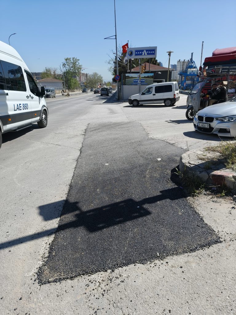 Sanayi Caddesi üzerinde, belediyeye ait asfalt üretim tesisi KARYAPSAN’ın önünde aylar önce meydana gelen yol çökmesi sonucu oluşan çukur, sürücüler için ciddi risk oluşturdu. Trafik işaretlerinin hemen yanında bulunan ve özellikle dönüş yapan araçlara zor anlar yaşatan çukur, vatandaşların defalarca şikayet etmesine rağmen uzun süre müdahale edilmeden kaldı.